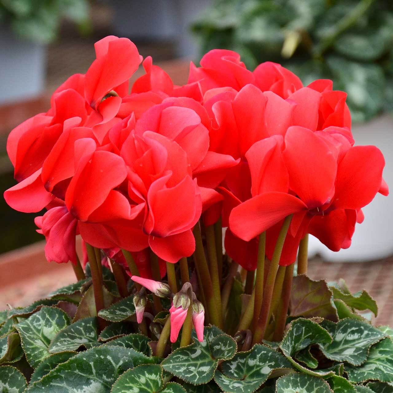 お花の色はレッド系になります。大きさは6号鉢のバスケット付きです。